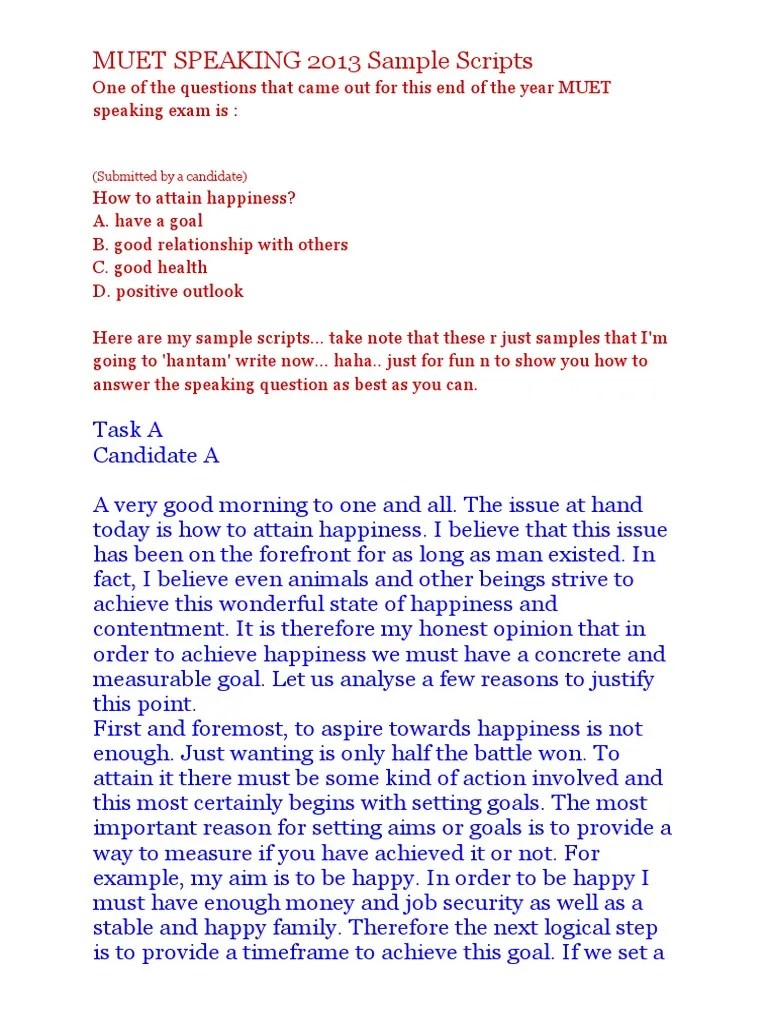Hope it is helpful to the others. Sample muet speaking test (new 2021). Suggest some feats that can be achieved.task a (candidate b): There are several ways of ensuring the success of group projects. Sample speaking questions muet july 2015 21st century learning.